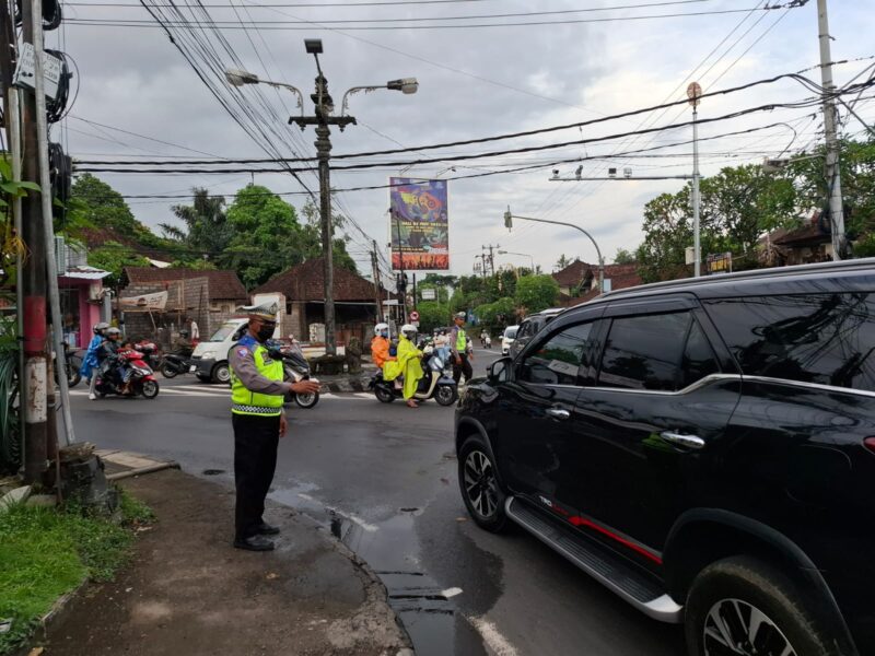 ABIANSEMAL – Dalam upaya mewujudkan keamanan, keselamatan, ketertiban, dan kelancaran lalu lintas (Kamseltibcar Lantas), personel Polsek Abiansemal melaksanakan kegiatan pengaturan lalu lintas (gatur) sore di sejumlah titik rawan pada akhir pekan. Minggu (7/12/2025) sore.